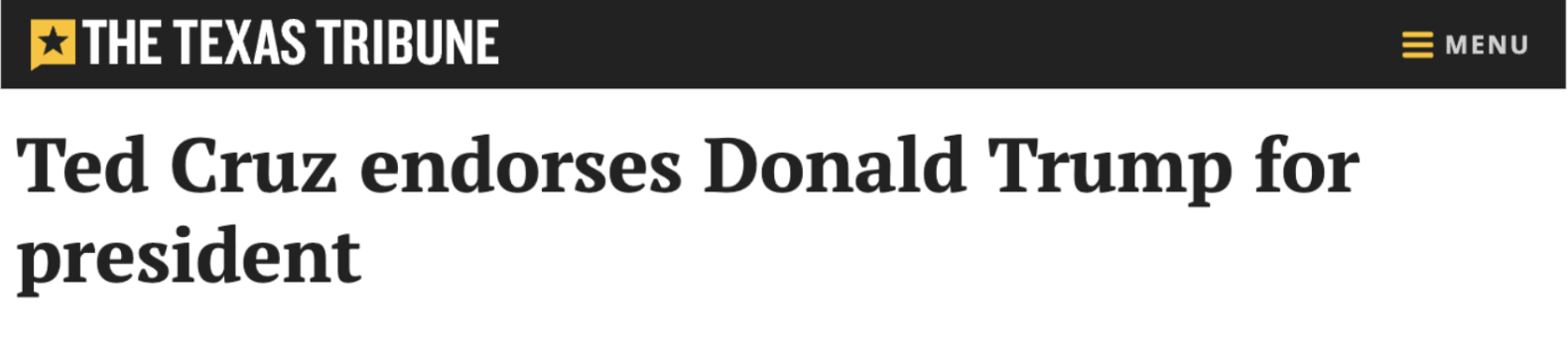 For months now, Trump has been publicly chastising Ted for waiting to endorse him. And now he’s finally caved to the pressure.