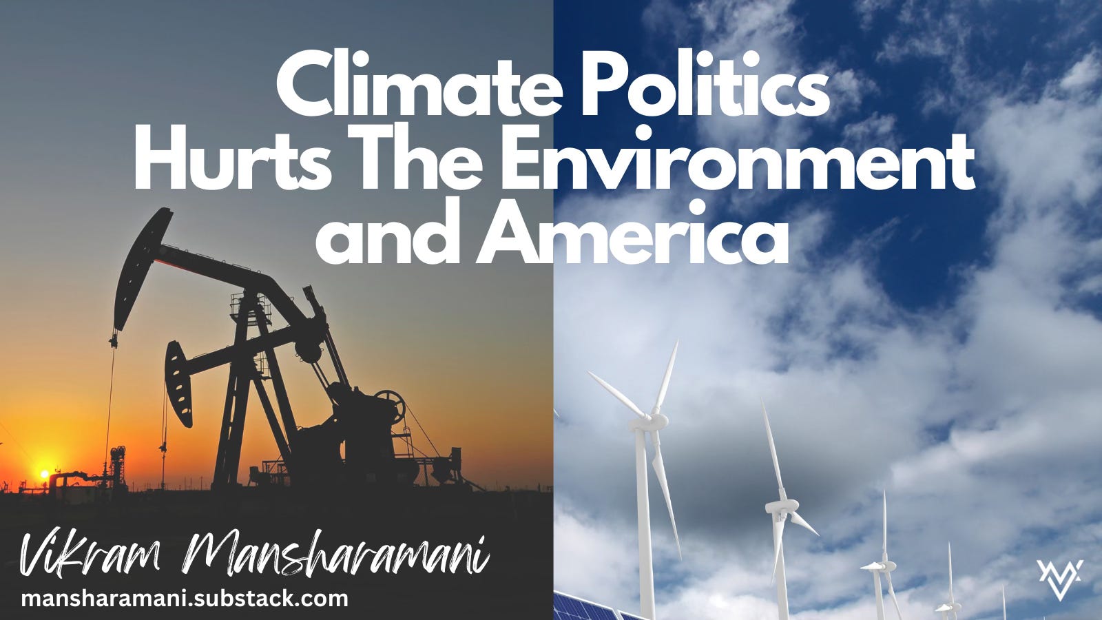 Climate Politics Hurts The Environment and AmericaAn irrational focus on climate politics is creating bad policiesOn Friday January 26th, President Biden announced a “Temporary Pause on Pending Approvals of Liquefied Natural Gas Exports.” The timing of the announcement, a mere days after the New Hampshire primaries and Biden’s abortion rights campaign rally, points to an underlying political motivation for the White House statement. The opening lines of the statement also makes this clear: “President Biden has been clear that climate change is the existential threat of our time—and we must act with the urgency it demands to protect the future for generations to come. That’s why, since Day One, President Biden has led and delivered on the most ambitious climate agenda in history…” The document, which reads like a campaign flyer, touts the Biden Administration’s top climate accomplishments, which include the signing into law of the Inflation Reduction Act, the pursuit of an environmental justice agenda, the cancellation of oil and gas leases while also accelerating permits of clean energy projects, restricting emissions from power plants, and establishing a target that 50% of new cars sold in 2030 will emit zero emissions. In aggregate, Biden’s climate actions are seeking to deter the development of cheap, reliable, and dependable energy sources while they promote and subsidize supposedly “clean” energy production projects. Let’s consider the goal moving America towards electric vehicles, with a stated target that 50% of vehicles sold in the United States in 2030 would produce zero emissions. Or what about the Inflation Reduction Act’s subsidies for electric vehicles that began in 2022? How will these policies drive different behavior in America and the world and will they ultimately help the environment? Rather than point to generic statistics, I’m going to use a specific, personal example. In late 2022, I decided to trade in my Jeep Grand Cherokee. At the time, the dealership offered me around $33,000 for the car, which I happily accepted as it was above my expectations and the Kelly Blue Book value — a sign of the then robust used car market. The salesperson I worked with knew that I liked Wranglers and suggested I consider the new 4xe hybrid electric one. I immediately declined, saying that I preferred cars with a gross vehicle weight rating of over 6000 pounds as they qualify for accelerated depreciation, something that I am able to claim as a self-employed sole-proprietor. The Wrangler, I knew from prior consideration, was less than 6000 pounds. “Actually, Vikram, the 4xe hybrid wranglers are over 6000 pounds because of the extra weight of the batteries, so you’ll qualify!” This meant that the new 4xe Wrangler would cost me less on a tax-adjusted basis than the value of my trade! Wow, that’s a deal, I thought, and started examining the inventory at the dealership. The salesperson then chimed in with another tidbit of news, “And don’t forget that the Inflation Reduction Act will also give you a $7500 tax credit!” At the end of the day, I ended up getting paid five figures for trading in an old car and getting a brand new one. For all American taxpayers reading this piece, thank you! It was your money that the government transferred to me. But perhaps these transfers are a useful means to save the environment? Did my gasoline bill go down as my car’s efficiency went up? As I analyzed the data, I struggled to find any justification for the government giving me your money to buy this car. It was too hard to gauge the improved fuel efficiency from driving in hybrid mode, but it wasn’t significant: I gained a less than one mile per gallon gain when driving in hybrid mode. I did, however, find a simple measure of the car’s supposed benefit: the distance I could travel in electric-only mode. My new hybrid Wrangler had a range of around 21 miles (less on cold days) when in electric mode. That is not a typo. Twenty-one miles. On average, I think the range was probably even less, likely 18 miles or so. Given I didn’t spend the hundreds (thousands?) of dollars to have a fast charger installed in my home, it would take 12-14 hours to charge up the vehicle. My guess (very crude analysis comparing my electricity bill while keeping track of the number of days charging, etc.) suggested it cost me around $4 to fully charge the vehicle each time. (It’s worth noting that New Hampshire has some of the highest electricity prices in the country, so this amount may be different elsewhere in the country.) So what does this mean? Given that gasoline was under $4/gallon at the time and the vehicle was regularly getting more than 23 miles per gallon, I concluded that I was losing money every time I charged the vehicle. So I stopped, and I began using it as a traditional gasoline vehicle, albeit one that was heavier than it should have been. And in return for having the government pay part of the cost of the car, I had the privilege of driving a vehicle that put extra wear and tear on roads and bridges. It’s pretty clear to me that my hybrid Jeep Wrangler didn’t make economic sense without government subsidies and probably put an unnecessary burden on New Hampshire’s infrastructure. But it likely also hurt the environment. When we look at the supply chain for batteries, I’m pretty sure that producing the car had a bigger environmental footprint than that of a traditional gasoline car. And of course, let’s not forget that electric vehicles don’t produce power! Batteries are storage devices. An already overtaxed grid that included natural gas and coal fired power plants was providing the electricity to charge the batteries. Let’s also not forget that extra demand for electricity from electric vehicles would mean (all else equal) higher electricity prices for everyone. While I’m all for clean air and water and a better environment and healthier