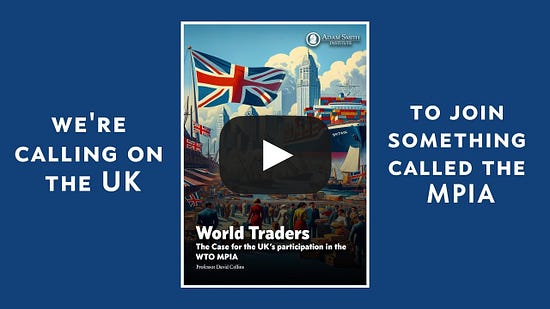 The deadline is the 30th of August at midnight. £8,000 will be awarded for first place, £4,000 for second place, and £2,000 for third place. Submissions can be sent to [email protected]. NEW REPORTS World Traders: The case for the UK’s participation in the WTO MPIA In this report, trade expert David Collins says that the World Trade Organisation (WTO) has long been a force for free trade. But its mechanism for settling trade disputes between member countries is stuck in a rut because the US has vetoed the appointment of any new judges. So we make the case for the UK joining an alternative arbitration system, the Multi-Party Interim Appeal (MPIA). Simples! Watch our explainer video below!