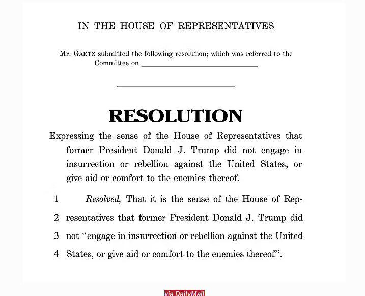 Please consider subscribing to help us reach our funding goals in an attempt to inform more Americans…Republican Rep. Matt Gaetz (R-FL) is rallying fellow lawmakers to back a resolution asserting that Donald Trump had no involvement in an insurrection on January 6 during the Capitol breach, aiming to effectively "exonerate" him on the Congressional record from the alleged crime. The document emphasizes the House of Representatives' stance that former President Trump "did not engage in insurrection or rebellion against the United States, or give aid or comfort to the enemies thereof." The Daily Mail exclusively obtained the resolution. "Your boss endorsed President Trump, and we would love to have your support as an original cosponsor before we send the resolution and the list of sponsors to the former President," read an email from Gaetz's team to offices of other Republican representatives. "This resolution is a no-brainer – controversial only to the most extreme of the far-left – and a statement of fact that every single Republican can be expected to support," it continued. "If the left has the courage to interfere in our elections and weaponize the judicial system against our brethren, we must have the courage to express what is self-evident." While the wording of the final resolution might be subject to change and its support is anticipated to increase, it's unlikely that every Republican will endorse it. "Yeah, we're definitely not signing that," a senior staffer for a GOP office that received the email disclosed to DailyMail. It's well-documented that Gaetz has been a vocal and staunch supporter of former President Trump. Gaetz has frequently defended Trump's policies and actions, both while Trump was in office and after his presidency. Gaetz's loyalty to Trump has been evident through his public statements, social media, and appearances at Trump rallies. This alignment has positioned Gaetz as a prominent figure within the Trump-aligned wing of the Republican Party. The original co-sponsors of the legislation are largely from the right wing of the Republican conference, from Reps. Marjorie Taylor Greene, Ga., and Andy Biggs, Ariz., to Kelly Armstrong, who is now running for North Dakota governor, and Gary Palmer, Ala., the House Republican’s policy chair. If the resolution goes to the floor, it could once again force Republicans to go on the record about whether or not they pledge fealty to former President Donald Trump and his efforts to overturn the 2020 election – which he is under indictment for. Republicans already went on record in the House in 2021 when 10 of them joined Democrats to vote to impeach Trump over his role in the January 6 Capitol riot. Only Reps. David Valadao, Calif., and Dan Newhouse, Wash., survived the 2022 midterms after Trump prompted retaliatory primary challenges to the other eight Republicans who voted to impeach him. The resolution is making the rounds fresh off Trump’s decisive primary victory over Nikki Haley in New Hampshire. Keep reading with a 7-day free trialSubscribe to PatriotNewsToday to keep reading this post and get 7 days of free access to the full post archives. A subscription gets you: