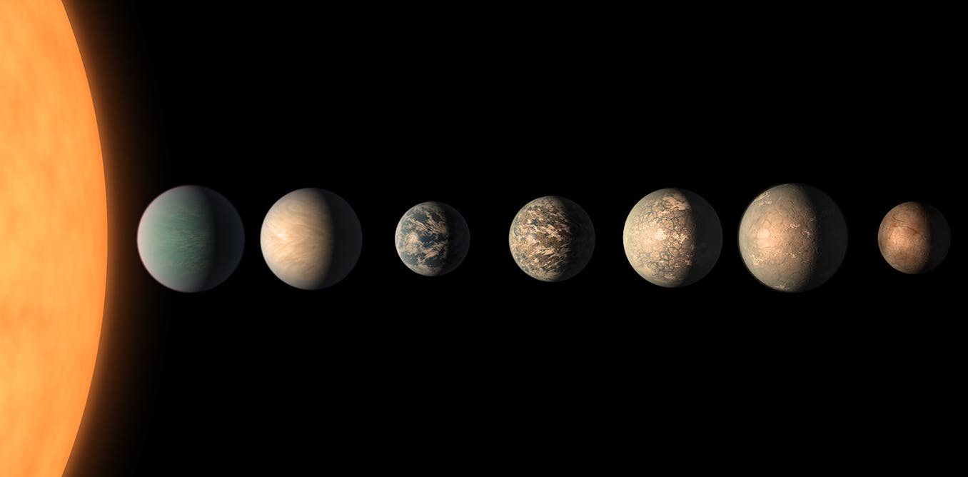 S46Orbital resonance - the striking gravitational dance done by planets with aligning orbits   Planets orbit their parent stars while separated by enormous distances – in our solar system, planets are like grains of sand in a region the size of a football field. The time that planets take to orbit their suns have no specific relationship to each other. But sometimes, their orbits display striking patterns. For example, astronomers studying six planets orbiting a star 100 light years away have just found that they orbit their star with an almost rhythmic beat, in perfect synchrony. Each pair of planets completes their orbits in times that are the ratios of whole numbers, allowing the planets to align and exert a gravitational push and pull on the other during their orbit.