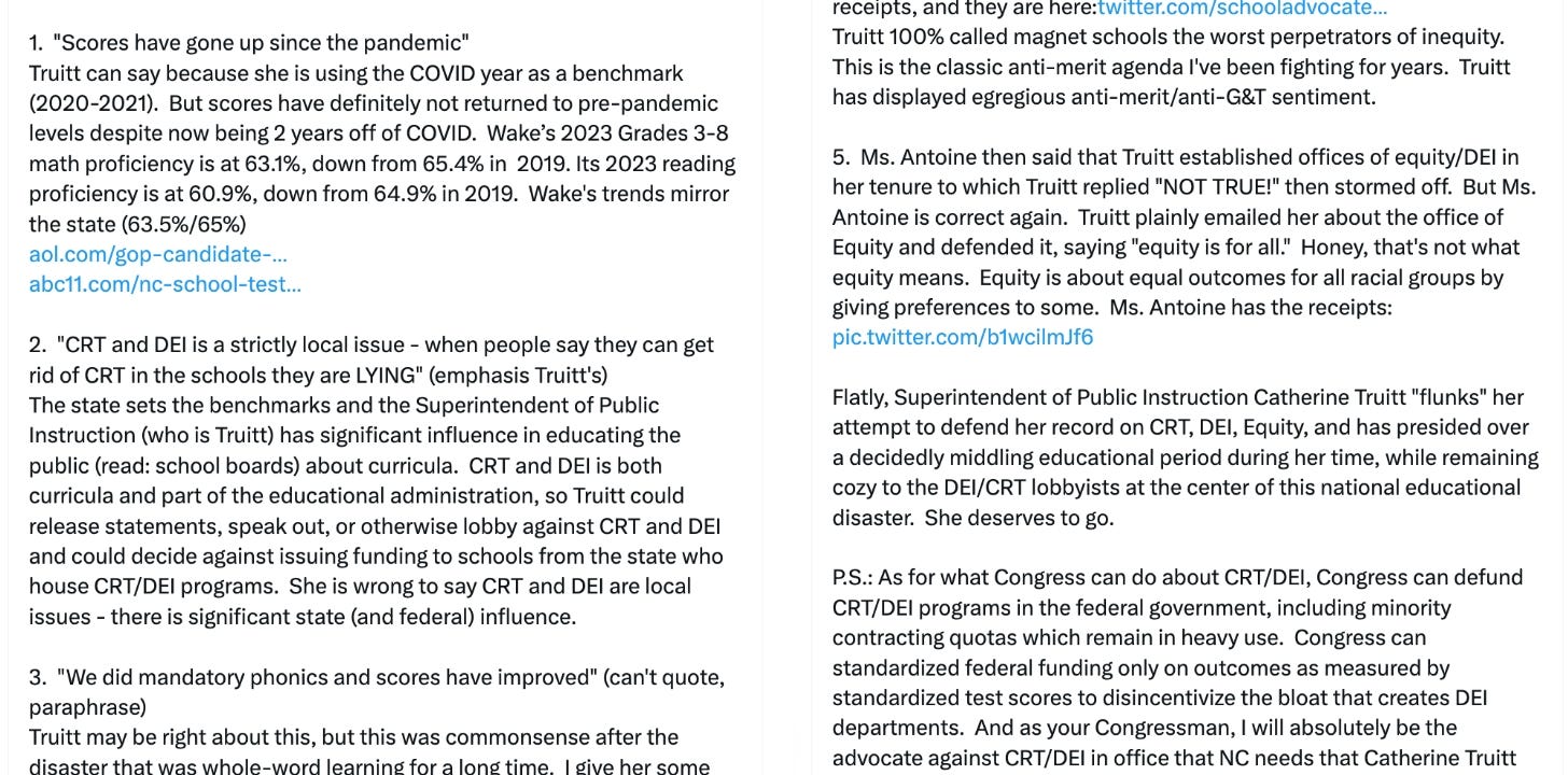 NC Superintendent Attempts To Shut Down GOP Speaker At A Campaign StopCatherine Truitt loses her cool on video while a JOCO School Board Member highlights the Superintendent's disastrous record.Catherine Truitt attended a Johnston County GOP meeting last Thursday night as part of her re-election campaign. The current superintendent boasted to about a hundred voters that she helped Republicans in the General Assembly pass conservative legislation. Truitt explained that her power to stop CRT in the classroom was limited given the Democratic majority on the State School Board.