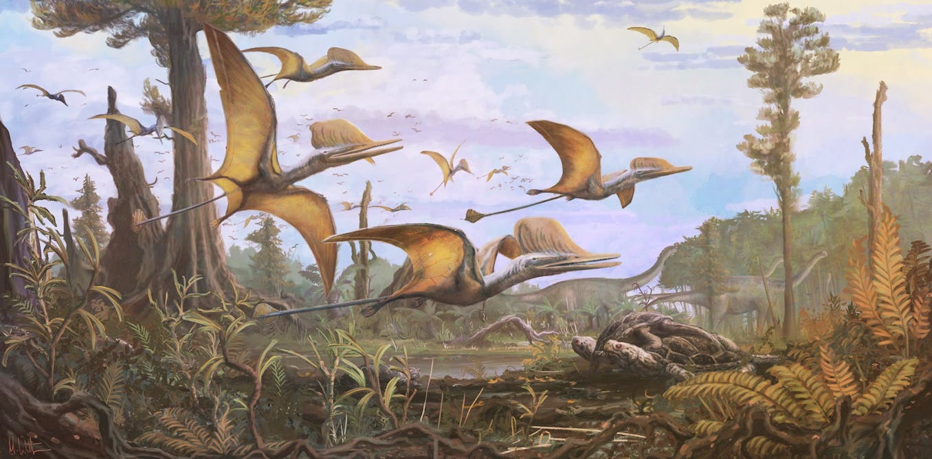 S45Newly identified prehistoric pterosaur will help us understand evolution of flying reptiles   When dinosaurs roamed the land, the skies above their heads were filled with a variety of soaring reptiles, which swept through the air on slender, membranous wings. These animals, pterosaurs, were not dinosaurs but their evolutionary cousins. We’ve just announced the discovery of a new species of pterosaur nearly 15 years after a fossil was found on the Isle of Skye. It is one of the most complete pterosaur fossils to be found in the UK since palaeontologist Mary Anning unearthed the first from the Dorset coast in 1828.