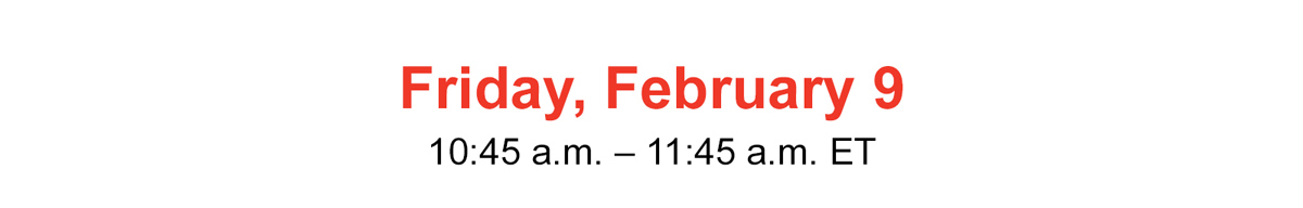 An image of the date and time for USGLC's National Town Hall Event on Friday, February 9, 2024 at 10:45 a.m. to 11:45 a.m. eastern time.