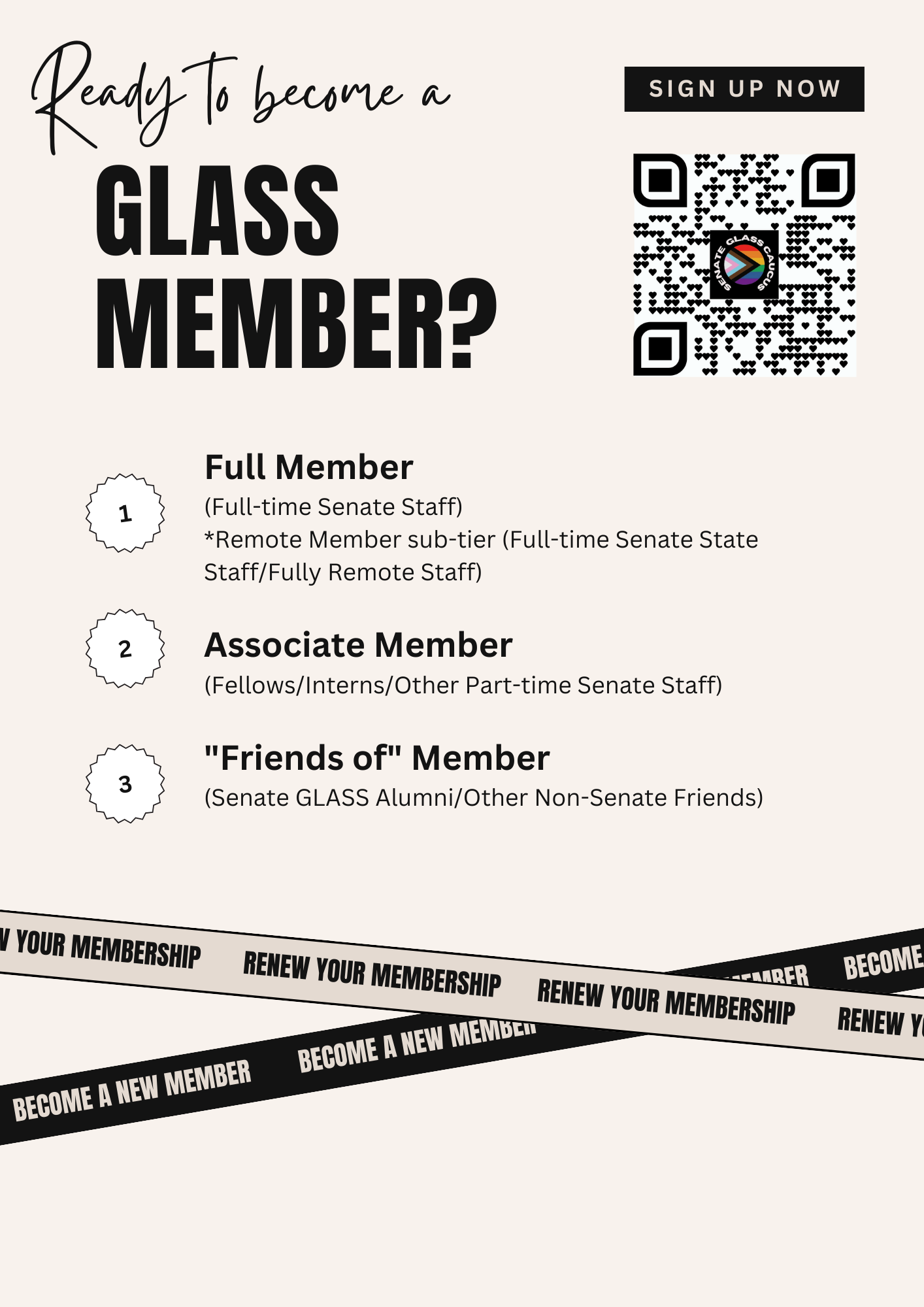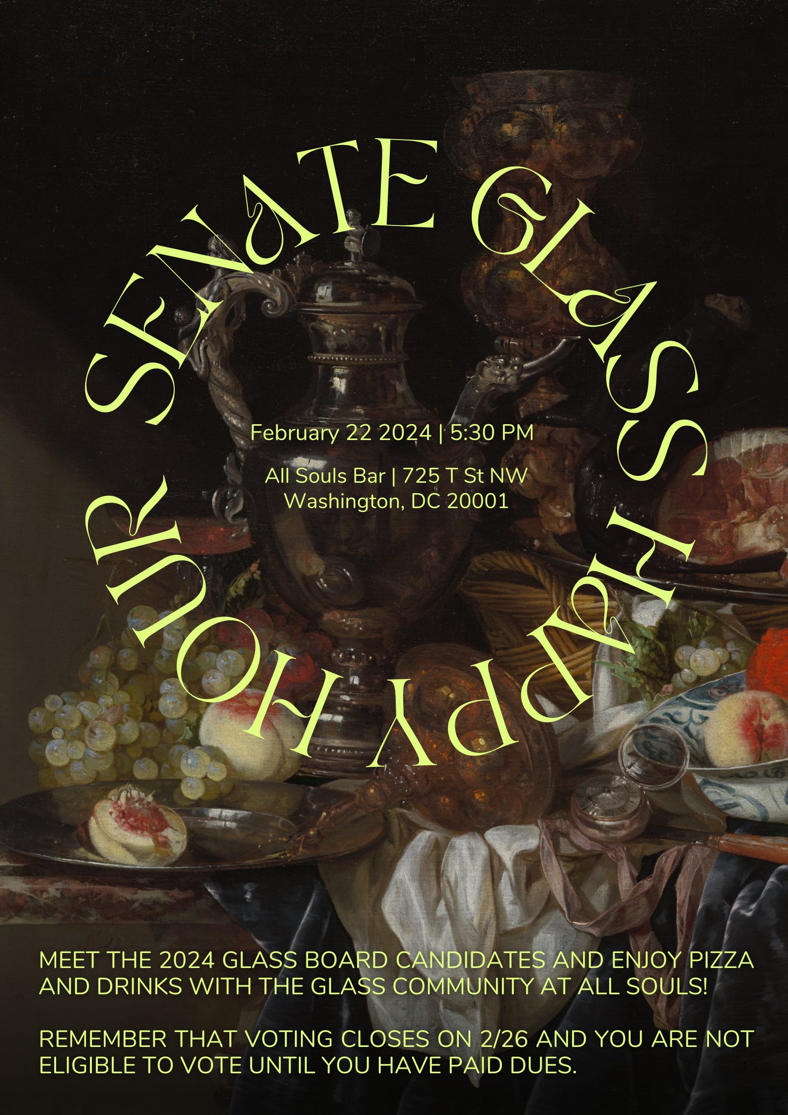 Senate GLASS Caucus Election ScheduleThis week marks the beginning of election season! Please see below for a full election schedule and a link to your ballot. The ballot will become active at 12:00am tomorrow, February 21 and remain open until the end of the voting period on February 29. If you have any questions, please reach out to [email protected]. February 20 | Filing Deadline for Candidates February 21-28 | Voting Period February 22 | Meet the Candidates Happy Hour February 26 | Last day to pay dues, which qualifies you to vote February 29 | Results Announced Last Call for CandidatesTODAY is the last day to submit your candidacy for election to the GLASS Board of Directors. Only candidates who have filled out the form at the link below are eligible to stand for election. If you have any questions, please reach out to [email protected]. Happy HourMeet your GLASS Board candidates and enjoy food and drinks at All Souls Bar this Thursday at 5:30pm! MembershipPlease fill out this form or the QR code in the below graphic to complete your 2024 GLASS Membership registration. Please email any questions or concerns to the GLASS Board at [email protected] |