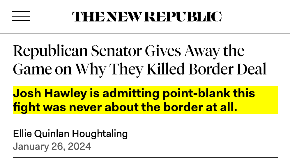 What I learned training with Border PatrolI trained with Border Patrol around Yuma, Arizona, ahead of getting deployed to our pointless forever war in Iraq. We all knew then that our border was a mess. The rest of the country knew it too.In 2009, I saw firsthand how our border and immigration policies work well for corporate elites and showboat politicians, and not any of the rest of us. Back then, while Josh Hawley was working at DC’s oldest elite law and lobbying firm, I was training with Border Patrol agents around Yuma, Arizona, ahead of getting deployed to our pointless forever war in Iraq. We all knew then that our border was a mess. The rest of the country knew it too. Since then, hundreds of politicians like Hawley have centered campaigns on it. Year in and year out, leaders in Congress bicker and negotiate over it. Turn on Fox News, MSNBC, and CNN at any point in the last decade and a half, and you’ll see politicians claim they’re going to do everything they can to get it done. Campaigns have raised and spent millions of dollars promising to fix it. Fifteen years later, they haven’t changed a bit. The border is even more of a mess. And politicians like Josh Hawley have torpedoed any action to secure our border explicitly for the sake of campaigning. Hawley is just like the rest of them in Washington. If he fixed the border, then he’d lose one of his favorite campaign props. Hawley (rather famously) would much rather be seen fighting than actually fight to get something done. That’d require putting in real work to get something done, and corporate law didn’t prepare him for that. After all, when he worked there, Hawley’s old firm (Hogan Lovells, previously Hogan & Hartson) represented anti-union Japanese car companies, Swiss Banks, and dozens more multinational corporations who are profiting just fine off our broken immigration system as it is. When the bi-partisan deal emerged in the Senate this year, it wasn’t perfect. But it provided critical investments and rule changes that would help us further secure the border. That’s why the deal was endorsed by the union for Border Patrol officers, the National Border Patrol Council. It took a stab at limiting the record influx of people pooling on our side of the border — but it didn’t address the fact that economic migrants keep erroneously seeking asylum, even as a majority of asylum applications are already being rejected. The deal’s expedited work visas represented a hallmark problem of our existing system, with visa availability determined seemingly arbitrarily rather than being set by labor needs or the priorities of American workers. It set a threshold at which asylum entry gets largely restricted automatically when our border is overwhelmed (as it is now), at least somewhat removing our weaker politicians from the equation — but we needed more of that in the deal. All things that could have been made better, while still providing more of what we needed to secure our border. But sadly, making this deal better wasn’t even possible. Politicians struck once again. Some (like Hawley) opposed this deal before they even knew what was in it, acting like the party of Koch-brother-backed Immigration Reform is suddenly going to fix the border after this next election. But history tells us they’re not telling the truth — when it comes to the border, it hasn’t mattered who controls Congress or the White House. Monthly migrant encounters doubled between 2021 and 2022, a huge jump under a Democratic administration. But they also doubled between 2018 and 2019, a huge jump under a Republican administration. And we’ve seen wave after wave going back decades. If I learned anything as a Marine in Yuma in 2009 or since then, it’s that our politicians are full of it. We can’t trust them to fix the border or our broken immigration system. And we sure as hell can’t trust a guy like Josh Hawley, who kicked off his career at China’s top lobbying firm. That’s why, in the U.S. Senate, I’ll fight for reform that removes politicians from the equation. If Congress can put bankers, of all people, in charge of monetary policy, they sure as hell can put workers at the head of the table on immigration policy. I’ll file legislation that gives working people a leading voice in determining who we need to bring into this country and how we do it, through a democratic body made up of our country’s most effective advocates for all workers: Organized labor. I’ve said this from day 1 — I’m running for U.S. Senate to take power back for working people in Missouri. It’s time they called the shots on what happens in our country. ### Thank you for subscribing to my Substack! If you would like to further support my campaign to defeat Josh Hawley and flip Missouri’s U.S. Senate seat, please consider chipping in $5 or whatever you can afford today: Use of military rank, job titles, and photographs in uniform do not imply endorsement by the Department of the Navy or the Department of Defense. |