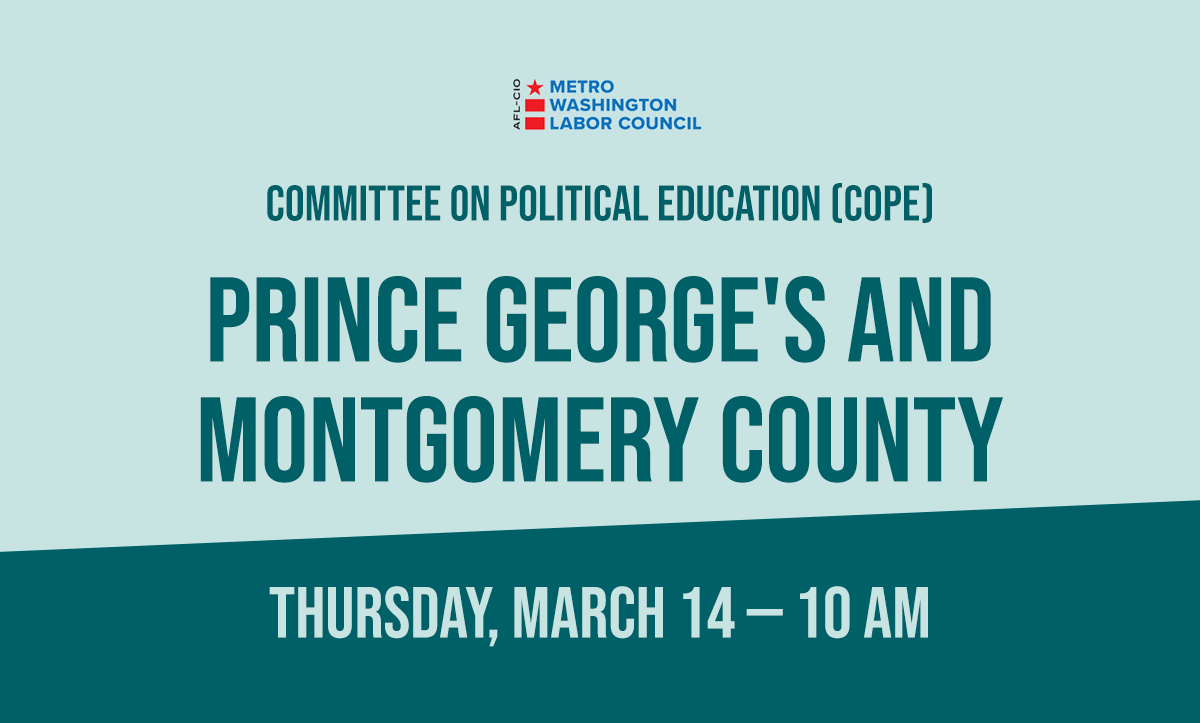 Our Prince George's and Montgomery County committee will meet tomorrow, March 14, at 10 AM on Zoom and this meeting is open to all Affiliate union members. Register now to join Thursday's meeting: