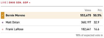 Conservative businessman Bernie Moreno (R-OH) won the Republican primary election for the U.S. Senate in Ohio yesterday. Thank you to everyone who answered the call last week to help push him on to victory in this critical race. Bernie Moreno was the clear conservative choice in the race, but the Republican establishment spent millions to help RINO Matt Dolan. Their efforts almost worked as polls showed a close race heading into the weekend. However, conservatives rallied when it mattered and won a decisive victory! Now is the time for Republicans to unite to help Bernie Moreno defeat liberal Senator Sherrod Brown in November. The contrast in this matchup could not be greater — it’s a conservative outsider against a liberal career politician. Sherrod Brown has been running for office for 50 years and consistently sides with the liberals in DC against the voters in Ohio on everything from taxes to border security to spending. Please help Bernie Moreno defeat Sherrod Brown by donating today. SCF will pay all processing fees and transfer 100% of your donation directly to his campaign. The outcome of this race could decide control of the Senate, so it is vitally important that Bernie Moreno has the funds to get his message out. Thank you for being part of our team and for doing so much to help change Washington by changing the people we send there. |