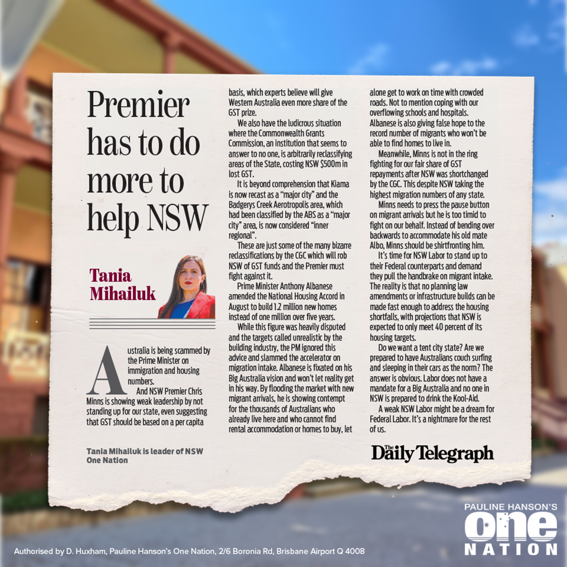 This week, our NSW One Nation leader has an important piece in the