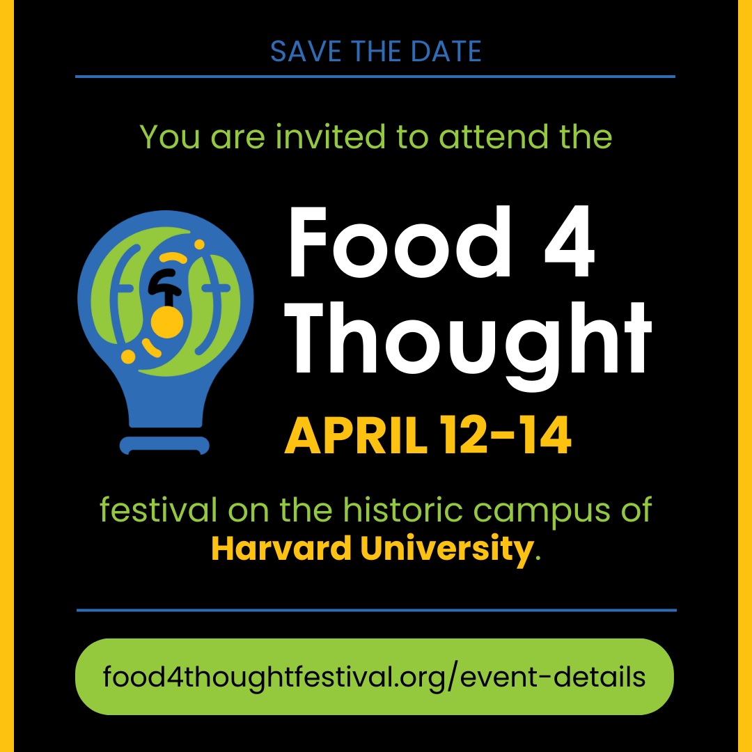 We invite you to join us at the 2024 Food 4 Thought Festival, hosted at Harvard University. Food 4 Thought (F4T) is a first-of-its-kind, entirely student-run conference designed to bring together global universities (so far from 6 continents) to envision the future of food.