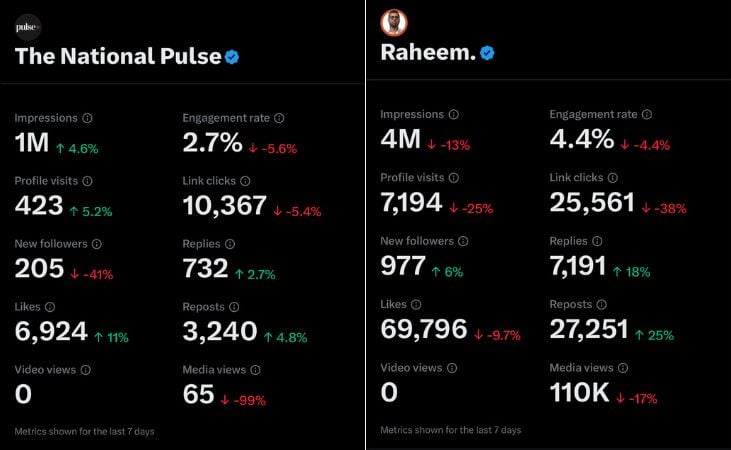 Despite more followers and more output from The National Pulse team, we continue to get suppressed.