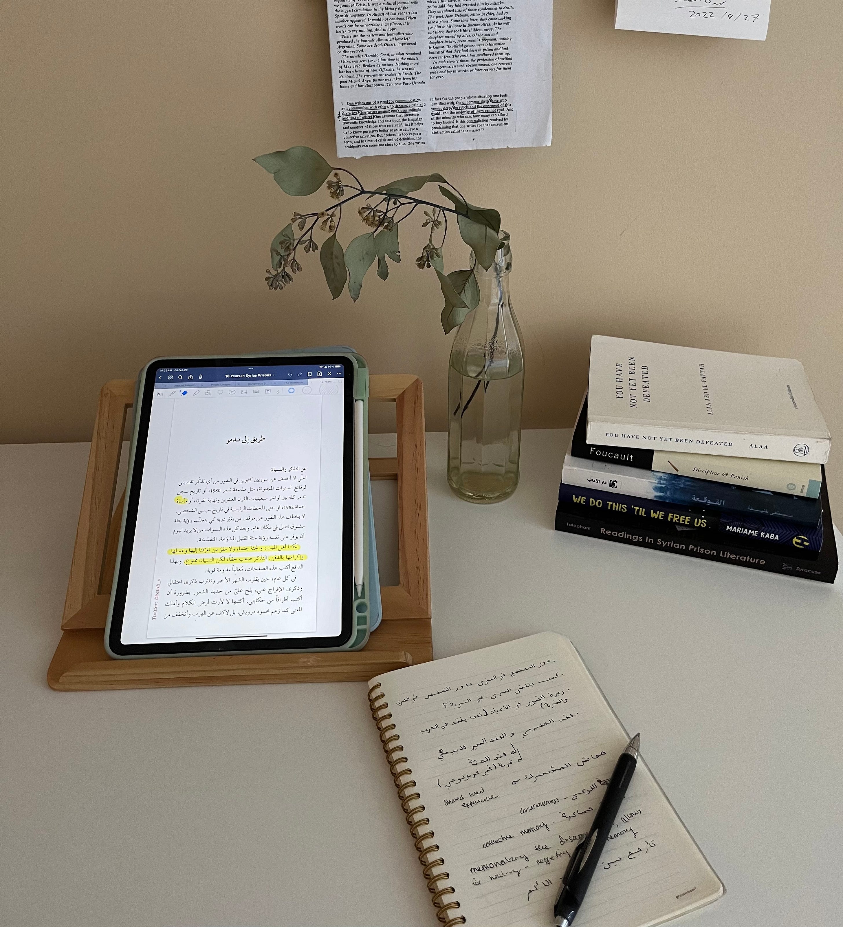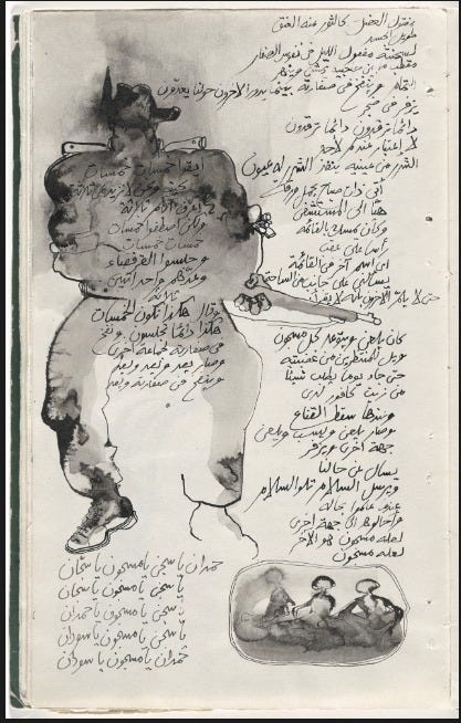 Creative Capsule Reflections — Where Language FailsArt and the prison experience in the Middle East and North Africa.Susan Aboeid and Sumaya Tabbah are Creative Capsule Residents working on a curatorial project on the prison experience in the Middle East and North Africa. Join them for the Creative Capsule Residency Showcase April 22, 2024 at noon Eastern. Register Here. Faraj Bayrakdar, a Syrian poet and journalist who spent almost 15 years in prison wrote in The Betrayal of Language and Silence: Sumaya: In 2023 I undertook a project translating Syrian prison language, a unique set of words that emerged during the prison experience that were documented in prison literature. In their writing, the authors document the horrors they endured, the struggle of reconciling their experiences with their reality after prison, and the effects it had on their family, among other themes. Authors consistently expressed their frustration at the constraints of their chosen medium of expression. As I observed then, “the [prison] experiences are so distinct, unnatural, and heinous, that they evoke an array of emotions that written language cannot express.” While I was immersed in the Syrian experience, the effects of carcerality extend across the region with colonial legacies, contemporary regimes using prison as a tool of state repression, and occupying powers using prisons as a means of exerting control. Palestinian survivors of Israeli occupation prisons speak of longing for home, Egyptian survivors of government prisons of the cruelty of the mundane, and Yemeni survivors of the secrecy of Houthi-run blacksites; all speak of the brutality and banality of torture. Two questions were triggered from my visceral reaction to reading these experiences — how can any person perpetrate such heinous acts against another? What other forms of expression have survivors and prison-impacted communities turned to to express the carceral experience? Susan: During this time, I was in the midst of studying and learning about prison abolition. The teachings and writings of Mariame Kaba and Ruth Wilson Gilmore guided me as I grappled with the question of how we, as a society, work towards abolition, transformative justice, and collective care. I was envisioning the answers to these questions beyond the US and applying a transnational perspective. It was here that I was reminded of the works of Ibrahim El Salahi and how he meticulously conveyed his harrowing experiences in prison. By rooting his art in the individual experience while also representing collective carceral experiences, El Salahi demonstrated how artists can play a powerful role in advancing abolitionist frameworks. ![]() Sumaya and Susan reading Ibrahim El Salahi’s Prison Notebook (1976) and Salah Hassan’s Ibrahim El-Salahi: A Visionary Modernist at MATHAF: Arab Museum of Modern Art and the Museum of Islamic Art in Doha. In 1975, renowned Sudanese artist Ibrahim El Salahi was arrested by the Nimeiri regime and taken to Khartoum’s infamous Kober Prison where he remained for six months without trial. After his release, El Salahi was placed under house arrest. It was during this period that he began processing his experience, he writes, “When I was released at last, every single night I woke up from these horrible dreams. That is what made me start making small sketches, small abstracts of color.” His works, a series of sketches, poems, and commentary were compiled in the 1976 publication Prison Notebook. It was this thread of commonality across the prison experience in the MENA region and the use of art as a tool of reconciliation and abolition that brought us together and inspired our curatorial project, “A Prison, a Prisoner, and a Prison Guard:” An Exploration of Carcerality in the MENA Region. Our exhibit title borrows from El Salahi’s untitled poem, first documented in his Prison Notebook. The poem is about a prison guard named Hamdan, whom the author seemingly feels sympathy towards. El Salahi recounts how every morning Hamdan, who was illiterate, would wake up the prisoners at dawn and count them in groups of five. Prison Architecture In the poem, El Salahi blurs the lines between prisoner and prison guard, as well as between victim and perpetrator. He metaphorically expands the prison beyond what occurred “within those very, very high sandstone walls,” to all of Sudan. In his commentary for the poem and the drawing, El Salahi writes, “Because what was happening to [Hamdan], what was happening to us — we were all in a big prison.” We want this exhibit to break down and reconstruct the viewer's understanding of the “prison.” We want people who visit the exhibit to redefine and reimagine what they envision the prison to be. Could a diplomatic mission house be considered a prison? What about an old airport? A world heritage site? A school? Society as a whole? What is Prison Art? Nicole R. Fleetwood, curator and author of Marking Time: Art in the Age of Mass Incarceration uses the term “carceral aesthetics,” to describe “the production of art under the conditions of unfreedom.” These conditions, such as “penal space, time and matter,” become both the raw material and the subject matter for prison art. It is through this understanding of carceral aesthetics that we see the creation of art as politics, as a way to produce meaning under hostile, traumatic and brutal circumstances. With Fleetwood’s conceptualization of prison art in mind, we asked ourselves the question “What is prison art?” Was it art created in prison, art created after prison, art created about prison? Did the artists have to be imprisoned or formerly imprisoned? How do we define and set parameters for an entire category of art? Further still, many of those who produced “art” in prison would not consider their products art or themselves artists. What does it mean then, for us to categorize them as artists and their work as art? As we