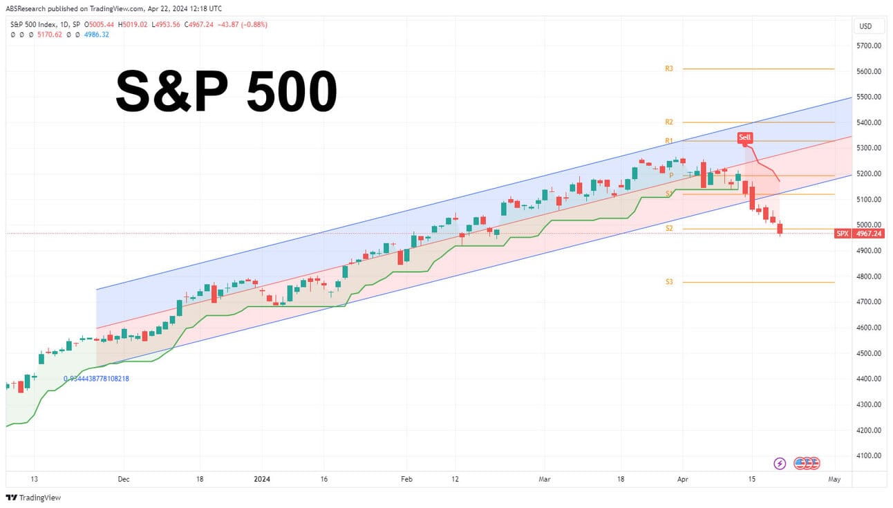 | | Rate Watch | Investors are recalibrating their expectations regarding the future path of interest rates. After initially anticipating six to seven rate cuts throughout the year, those hopes have gradually diminished to a mere trickle. In fact, there is even discussion surrounding the risk of further tightening measures. | | As is often the case, the pendulum swings between traders’ hopes and fears, struggling to maintain a balanced perspective. Excessive pessimism should coincide with a market low. I’ll be keeping a close watch on U.S. government bond yields, particularly the 2-year and 10-year maturities, to detect any downward turn. Such a development should logically fuel a decline in the U.S. dollar and a recovery in the stock markets. | Indeed, amid an election year, with the specter of President Donald Trump’s potential return to power, it’s a safe bet that the Federal Reserve won’t allow conditions to deteriorate too far, risking undermining economic growth and eroding American households’ confidence in the establishment. | US Market Highlights | ASML (ASML) and TSMC (TSM) were standout losers in the semiconductor space, declining 10.6% and 10.4% respectively. ASML reported weaker-than-expected Q1 bookings, while TSMC, despite posting better-than-expected earnings, warned that the chip industry is enduring a more gradual recovery than anticipated. NVIDIA (NVDA), another semiconductor giant, dropped a staggering 13.6% on no specific news, although its shares are still up an impressive 53.9% since the start of 2024. The downside bias in stocks was also fueled by rising interest rates, as Fed officials suggested they are in no hurry to cut rates. Recent inflation reports have not given them enough confidence that inflation is on a sustainable path to the 2% target. The 2-yr note yield settled nine basis points higher at 4.97%, while the 10-yr note yield settled 12 basis points higher at 4.62%. Geopolitical uncertainty related to events in the Middle East also contributed to the negative sentiment, as Israel attacked Iranian territory in retaliation for Iran’s recent drone and missile offensive.