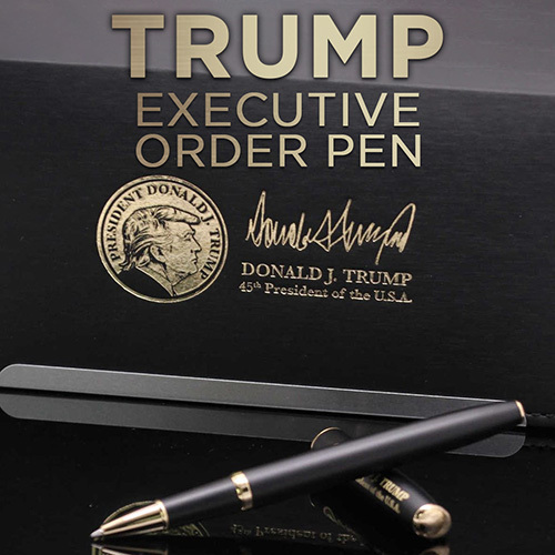 This one-of-a-kind executive pen is a replica of the same pen President Trump used when signing his executive orders! The pen has a deep black color and touches of stunning gold.