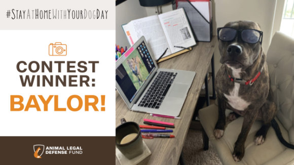 The winner of our #StayAtHomeWithYourDogDay photo contest is Angela and her pup, Baylor! Congratulations, Baylor and Angela, and enjoy your swag bag!