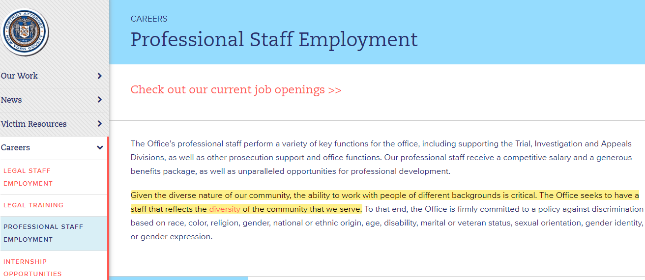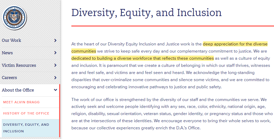 “Alvin Bragg has demonstrated beyond all doubt that he will disregard the law and abuse his authority to advance a political agenda. His practice of recruiting, hiring, and promoting workers based on their race, sex, or national origin is obnoxious, immoral, and illegal. The EEOC and the New York Human Rights Division were created to stop Bragg and others like him from illegally discriminating against Americans; based on the facts, they should act to protect equality and the rule of law.“<> said Reed D. Rubinstein.