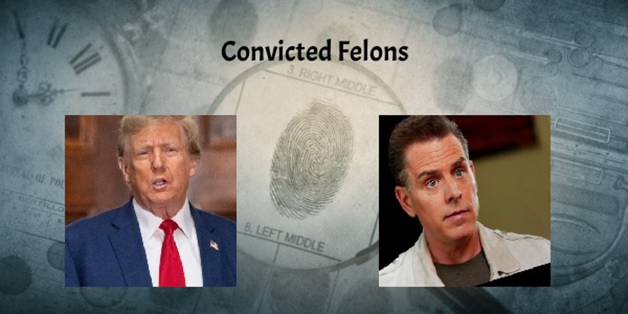 Trump was found guilty of 34 felonies in the hush money case while Hunter was found guilty of 3 felonies in the gun case.