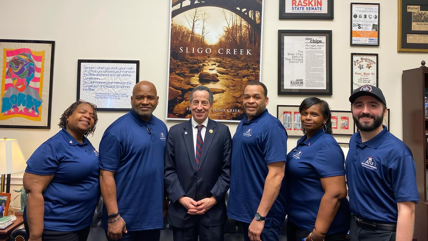 Left: As Montgomery County hosted a community meeting last night on their upcoming bus depot, LiUNA and the Baltimore-D.C. Building Trades Council called on Montgomery County leaders to make sure the project includes a PLA so that it creates good, local jobs. Right: As part of ATU's national legislative conference last week, ATU Local 689 visited our region's Congressional delegation to push for issues like federal funding for transit operations, workers’ rights, AI and autonomous vehicles, and microtransit. And congratulations to Local 689 for being recognized by ATU for your legislative activism and COPE work in the DMV!