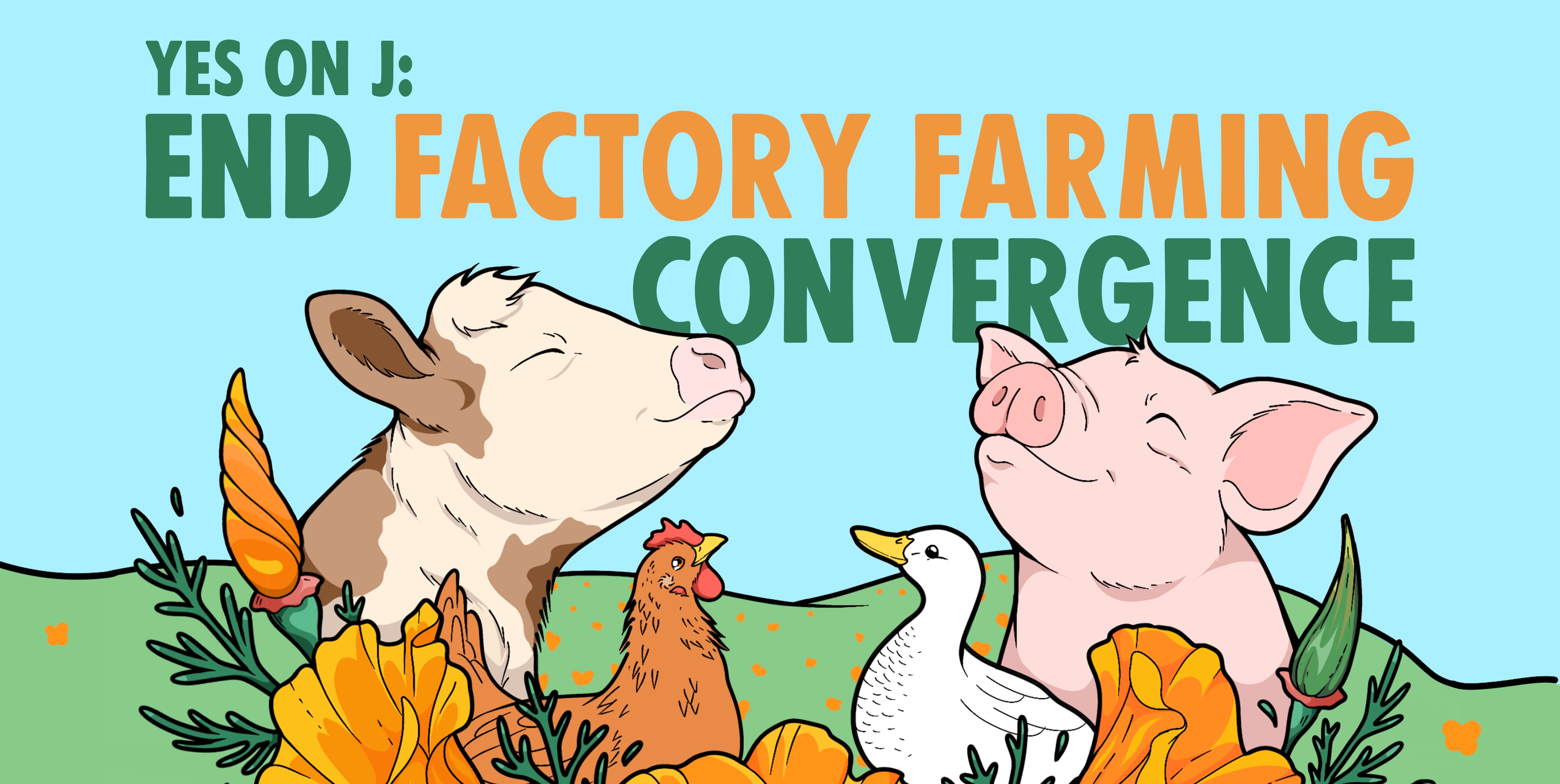 I’m so excited to announce the launch of the Yes on J: End Factory Farming Convergence, five days of activism for animals from Friday, August 23rd to Tuesday, August 27th in Petaluma, California, about an hour north of San Francisco.