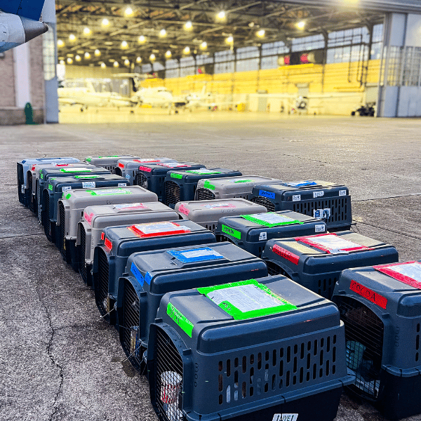 Every single one of those wags is a victory dance for these precious pups, all thanks to your generous contribution. Check out the pups being unloaded from the rescue flight you made possible below.