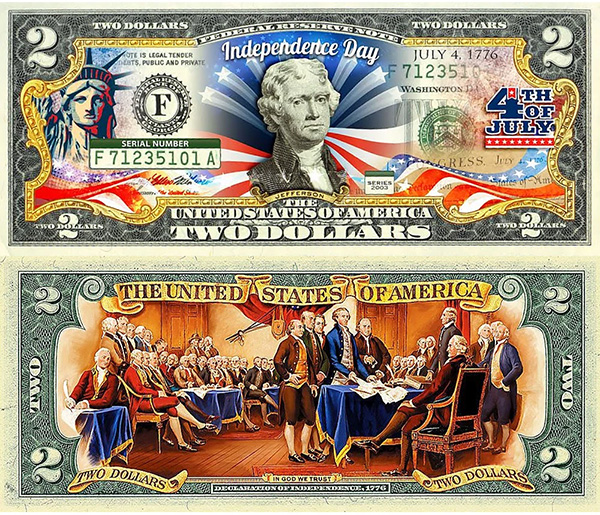 Join your fellow Americans and celebrate Independence Day by collecting this limited edition colored $2 Bill.