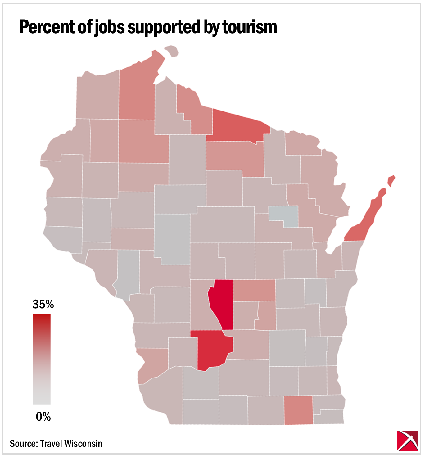 Wisconsin’s tourism industry, which just had a record-setting year, is a major source of jobs, though its impact varies from one community to the next.