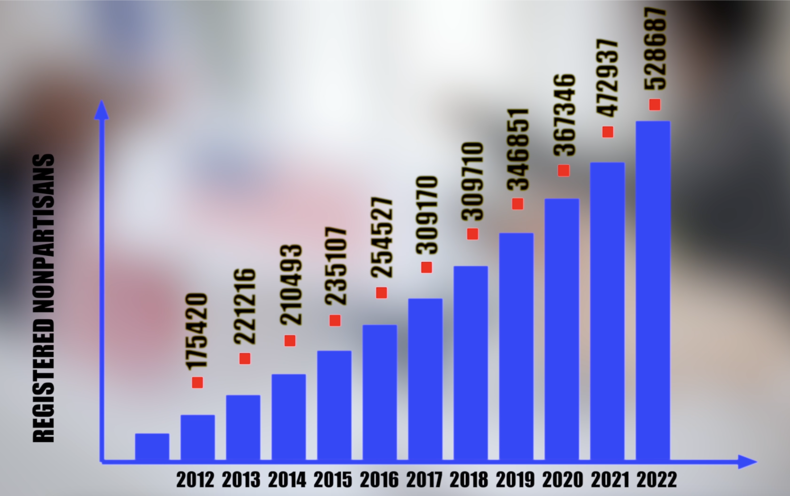 of nonpartisan voters continues to rise in the Silver State–with nonpartisans now