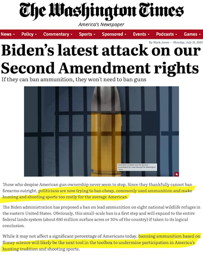 Biden is simply trying to ban all lead ammunition on lands where there is no science to justify the ban. |