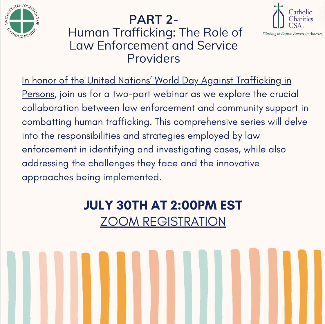 Join us for a two-part webinar series, as we delve into the basics of human trafficking, and the role of law enforcement, detection, and other topics.