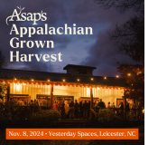 Save the date! On Nov. 8, join us in celebrating the end of the harvest season and supporting ASAP's work. Come together at the table to share an Appalachian Grown dinner at Yesterday Spaces in Leicester, NC. The meal will be served small-plate style with the opportunity to chat with the farmers and chefs that grew and created each dish! Look for announcements of participating chefs in early fall.