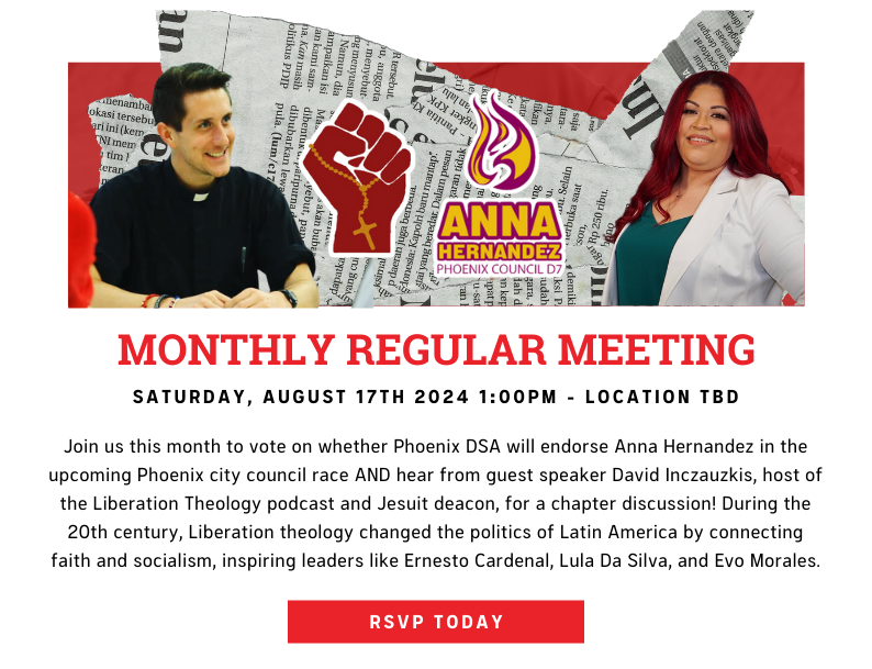 Megan Romer will be hosting a political education and discussion event on TONIGHT, August 5th, from 6:00pm - 8:00pm at the SEIU Airport Workers United Space in Tempe, AZ.