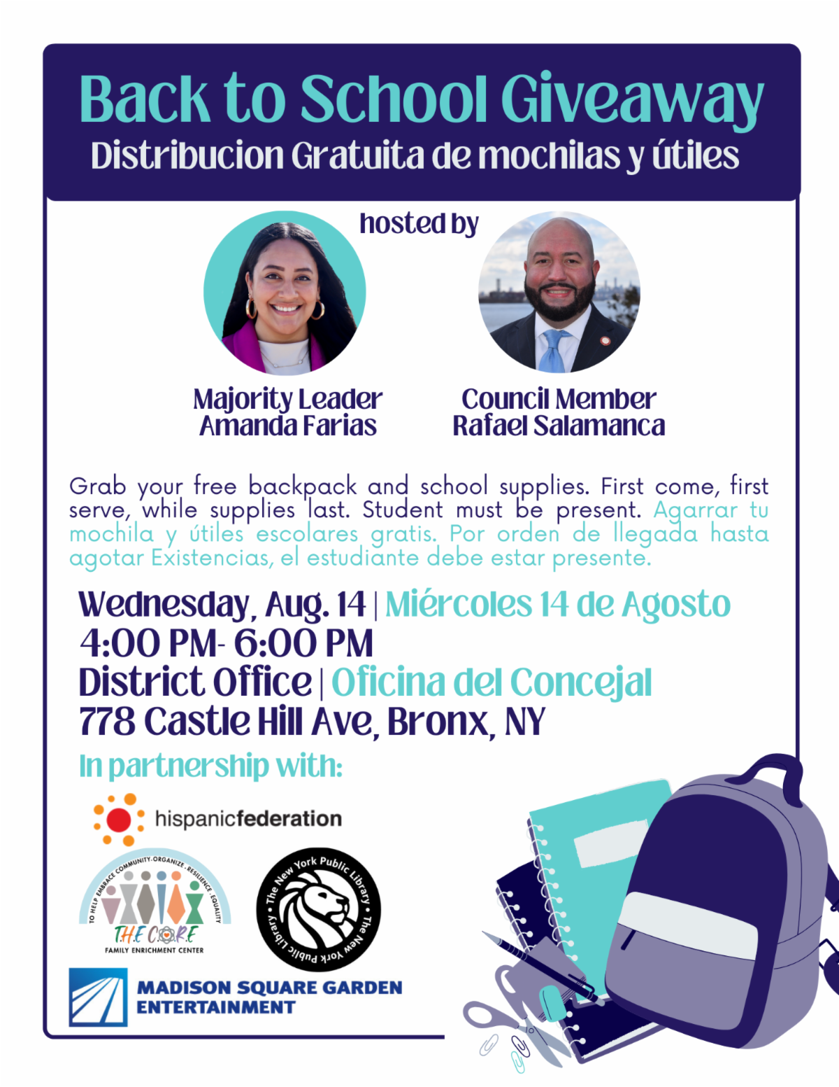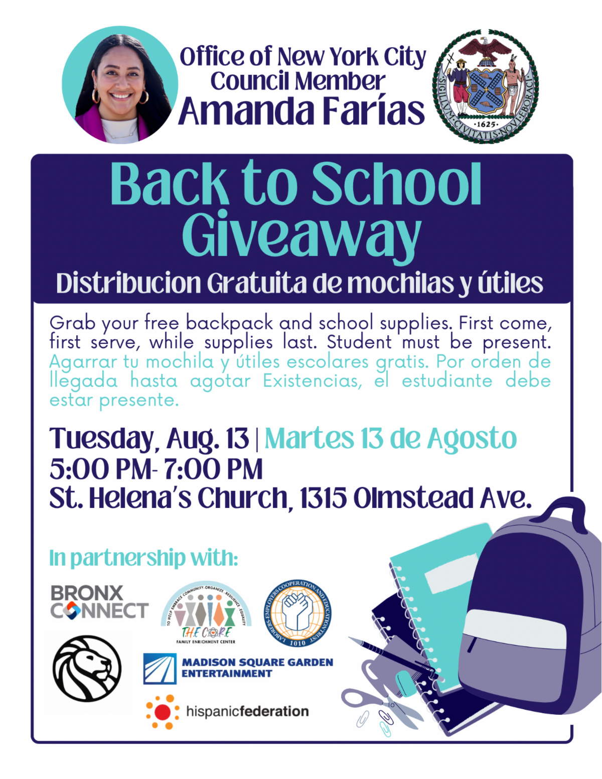 Wednesday at 4 PM for a Back-to-School Giveaway at my District Office
