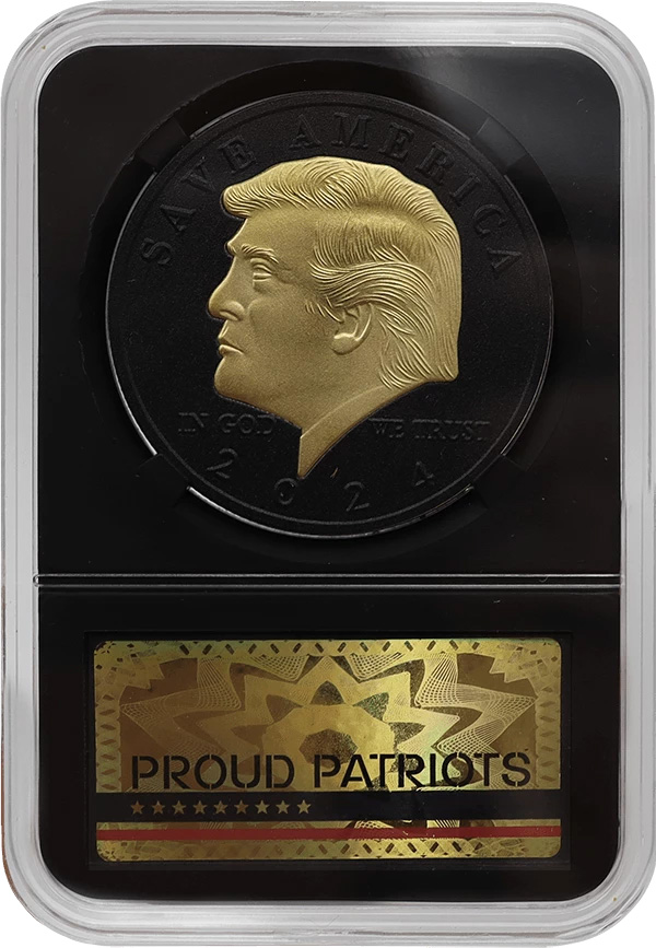 Prepare for Donald Trump's inevitable return to the White House with this collectible Donald Trump "2024" Black & Gold coin, exclusively from Proud Patriots.