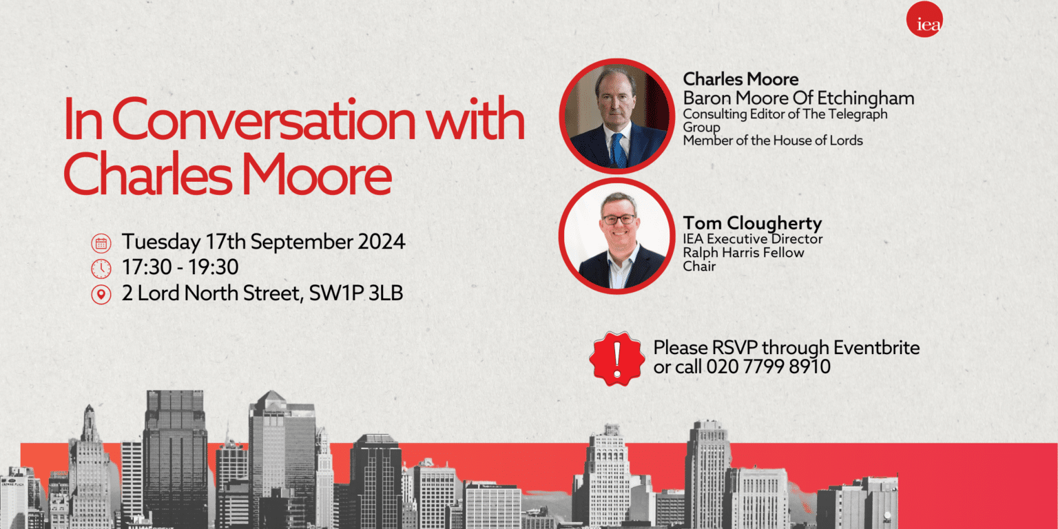 We are thrilled to welcome Charles Moore as a guest speaker for the next in our In Conversation series with senior figures across public life. Charles has been the Consulting Editor of The Telegraph Group since 2004 and is best known for his three-part biography on Margaret Thatcher. He covers politics with the wisdom and insight that come from having edited The Daily Telegraph, The Sunday Telegraph, and The Spectator. In July 2020, Charles was given a peerage and made a member of the House of Lords, and became Baron Moore of Etchingham. He is also known for his work as Chairman of the London-based think tank, Policy Exchange, before stepping down in June 2011. As one of the most influential and prominent political voices of the Thatcherite centre-right, the conversation, hosted by IEA Executive Director Tom Clougherty will look to shed light on the state of Thatcherite thinking over the recent years, his perspective on the outlook for the future of freedom in these uncertain times, and much more. Date: Tuesday 17th September Time: 17:30 – 19:30 Location: Institute of Economic Affairs, 2 Lord North Street, Westminster, London, SW1P 3LB) You’re currently a free subscriber to Insider. For the full experience, upgrade your subscription. Paid subscribers support the IEA's charitable mission and receive special invites to exclusive events, including the thought-provoking IEA Book Club. We are offering all new subscribers a special offer. For a limited time only, you will receive 15% off and a complimentary copy of Dr Stephen Davies’ latest book, Apocalypse Next: The Economics of Global Catastrophic Risks. |