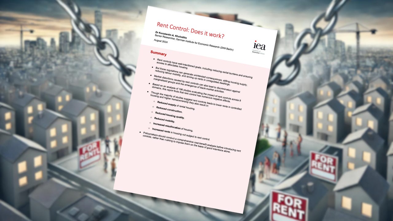 A new briefing paper from the Institute of Economic Affairs (IEA) provides a comprehensive global overview of the empirical evidence on rent control policies, finding that they produce significantly more negative consequences than benefits. This briefing comes as calls to introduce rent controls in Britain have mounted in response to the housing crisis. London Mayor Sadiq Khan, a recent Labour-commissioned report, and the Green Party have backed the idea. Scotland had a rent increase cap until March 2024, and tenants can still challenge some increases. Rent control involves the government setting the price for rent, usually below the market value. The paper, authored by Dr. Konstantin A. Kholodilin, Senior Researcher at the German Institute for Economic Research (DIW Berlin), reviews 196 studies undertaken over 60 years. They span almost 100 countries in all inhabited continents. The briefing paper highlights the strong and enduring consensus in the academic literature about the impact of rent control. Namely, according to Kholodilin, rent control benefits existing tenants at a significant cost to the broader society. This leads to less maintenance spending, conversion to owner-occupation, and the construction of fewer new properties, ultimately exacerbating a housing shortage. This week, reports emerged about the rental supply in Buenos Aires jumping by 195.2% following Argentina's President Javier Milei's repeal of rent control laws. According to Kholodilin, rent controls can also create ‘excess demand’ for housing. This can result in new residents finding it difficult to locate places to live, which decreases labour mobility, increases discrimination against marginalised groups, and boosts black market activity. The policy can also result in people staying in their existing apartments for longer than they should, such as a widower remaining in a large rent-controlled apartment long after her family has moved out. The lack of movement leads to a ‘misallocation’ of available properties, resulting in further economic damage. Dr Konstantin A. Kholodilin, paper author and Senior Researcher at the German Institute for Economic Research (DIW Berlin), said: “Rent control effectively reduces rents in the controlled sector, but does it a high price. Tenants occupying the rent-controlled dwellings benefit the most, at least in the short run, while newcomers lose from rent control. In the long run, rent control can undermine the rental sector forcing landlords to convert their dwellings and tenants to become homeowners.” Dr Kristian Niemietz, IEA Editorial Director, said: “Economists are a notoriously divided profession: ask three economists, and you get four opinions. But there are exceptions to this, and the study of rent controls is one of them. This is an area where the empirical evidence really overwhelmingly points in the same direction. The finding that rent controls reduce the supply and quality of rental housing, reduce housing construction, reduce mobility among private tenants, and lead to a misallocation of the existing rental housing stock, is as close to a consensus as economic research can realistically get.” Ronan Lyons, Associate Professor in Economics, Trinity College Dublin, said: “Dr Kholodilin’s comprehensive review of the rent control literature is tremendously helpful, not just for academics but also for policy analysts and policymakers, as numerous cities across the high-income world grapple with housing shortages. “The resurgence in rent controls over the last decade is, given the affordability challenge in housing, perhaps politically understandable. But, as Konstantin’s thorough overview shows, the economic costs of such policies can be significant. Armed with the key facts marshalled by this review, policymakers can make better informed decisions on rent affordability policies.” You’re currently a free subscriber to Insider. For the full experience, upgrade your subscription. Paid subscribers support the IEA's charitable mission and receive special invites to exclusive events, including the thought-provoking IEA Book Club. We are offering all new subscribers a special offer. For a limited time only, you will receive 15% off and a complimentary copy of Dr Stephen Davies’ latest book, Apocalypse Next: The Economics of Global Catastrophic Risks. |