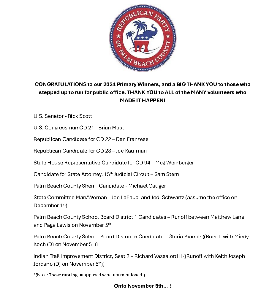 The Republican Party of Palm Beach County is asking you to request your Vote-by-Mail Ballot to ensure that you have a ballot automatically sent to you, which helps remind you of upcoming elections. The state of Florida has a relatively new Vote By Mail Renewal Requirement: All Vote By Mail requests made before November 8, 2022 are now expired so voters must make a new request. After you receive your vote-by-mail ballot, you have three options: