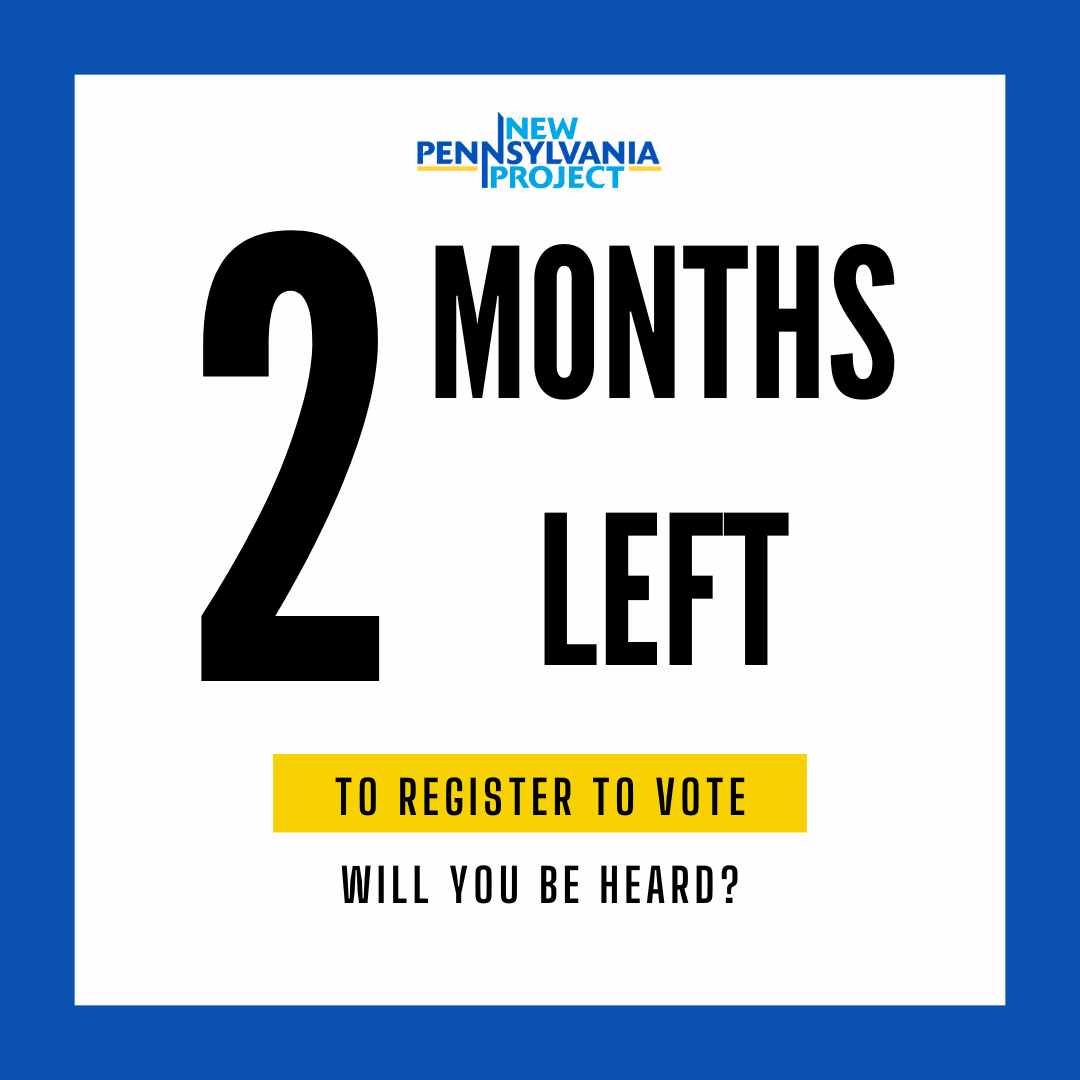 More than two million Pennsylvanians are eligible to vote, but are not registered or are at severe risk of being dropped off the voting rolls due to inactivity. The last day you can register to vote is on Monday, October 21st, 2024.