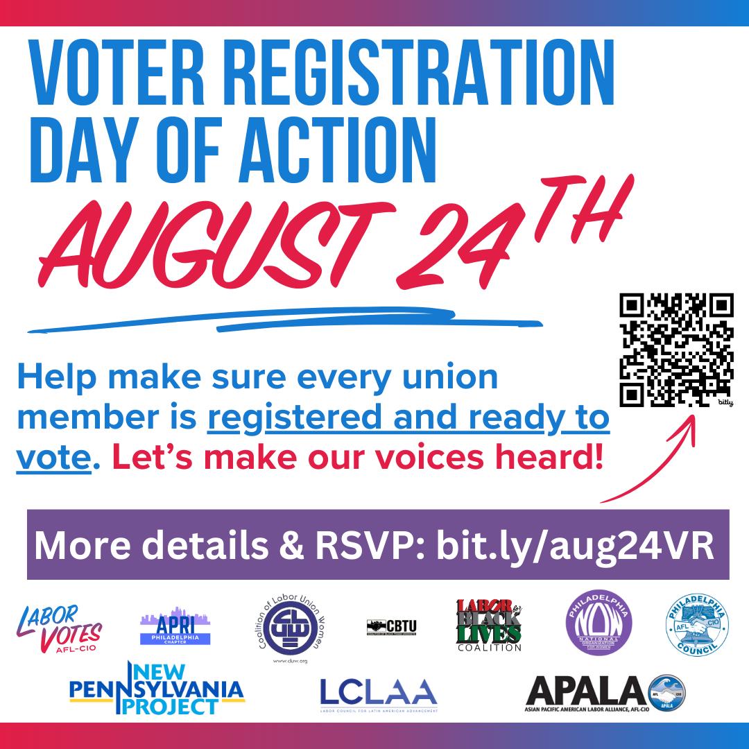 Join us for a non-partisan event with union members and community members about registering to vote and getting ready to participate in this year's election. |