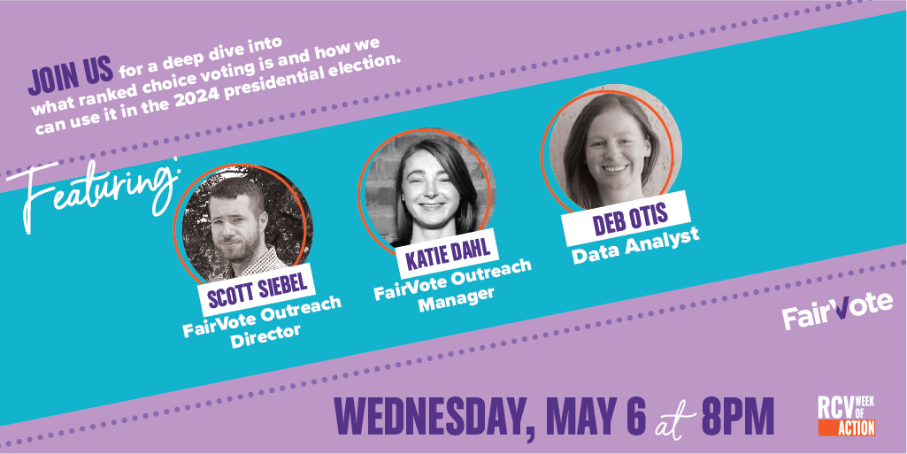 And please join us all week as we spread the word and build support for ranked choice voting. We have action opportunities each day next week. Watch your email inbox or follow us on Facebook, Twitter, or Instagram for how to engage each day.