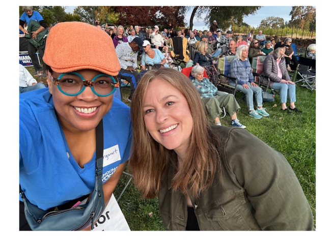 Margaret Fortune, EDC Democratic Party Chair & Neva Parker, candidate for Assembly District 5 enjoyed a visit and talking with EDC voters.