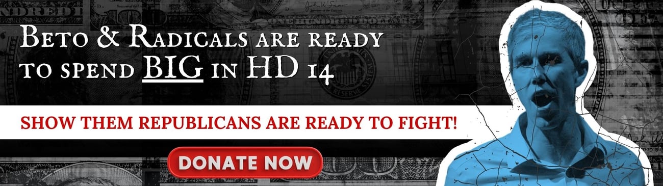 It is rumored that Beto and DC Democrats plan to spend $250,000 to turn out young liberals to flip House District 14. That is why I’ve set an urgent goal to raise $250,000 in the next 30 days to counter their influence and ensure our message of freedom, opportunity, and security resonates across every corner of District 14. Your contribution today could be the difference between victory and defeat in November.