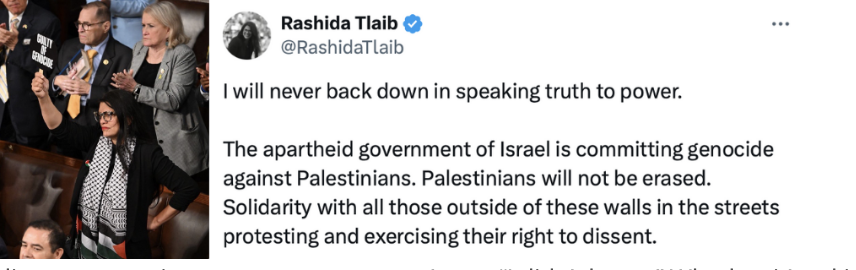 That means we can’t continue making excuses for politicians claiming to represent progressives while at the same time pandering to the Israeli apartheid regime, intentionally conflating anti-zionism with antisemitism, criticizing peaceful protestors demanding permanent ceasefire and justice for Palestinian people, and funding their genocide.