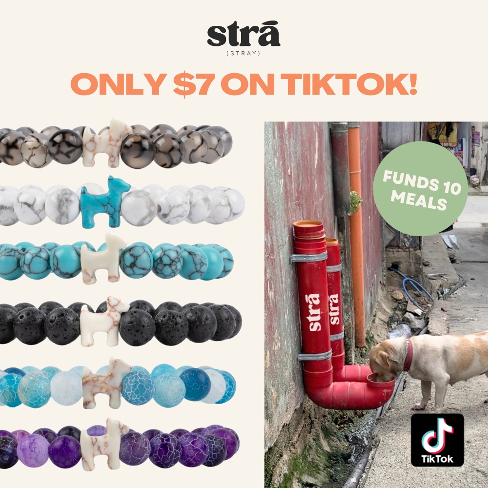 As you know, we recently launched our new brand called STRĀ that helps fund meals for stray dogs and cats all over the world.