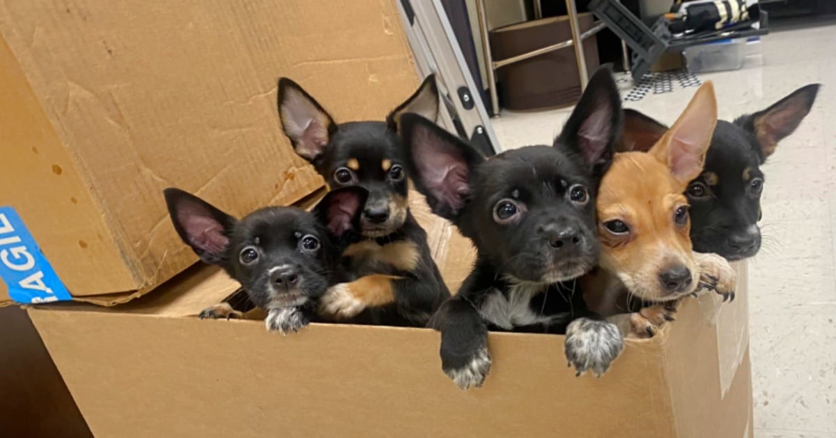 Ditched Puppies Tumble Out Of Box To Get ‘Extra Help’ From Teacher