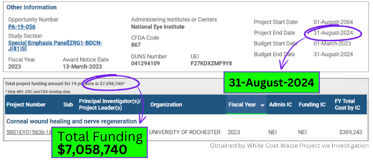 Taxpayer, here’s why it’s urgent: NIH payout #R01EY015836—the federal grant funding the Rochester cat lab—comes due at MIDNIGHT TONIGHT.