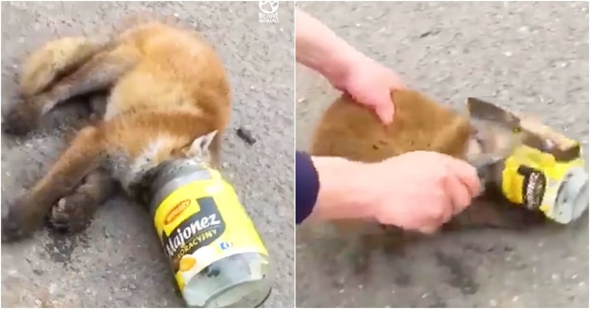Fox Collapses After Head Gets Stuck In Jar, Farmer Grabbed A Hammer