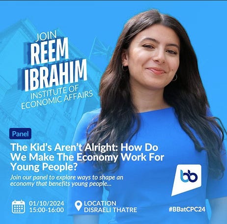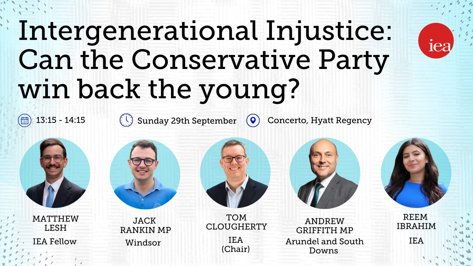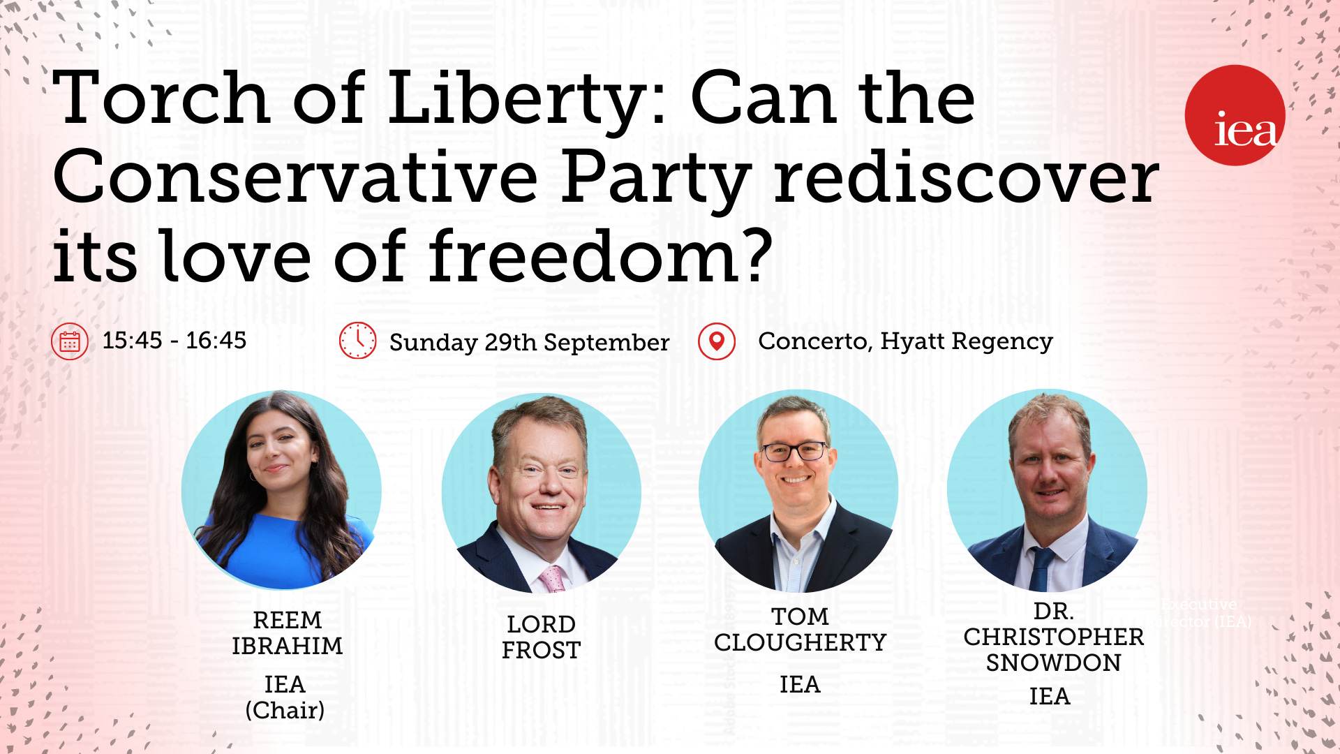The Institute of Economic Affairs is delighted to announce a series of events at Conservative Party Conference. The IEA team will be in Birmingham from Sunday. If you’re going to be there, I do hope you will join us. Sunday 29th SeptemberIEA Panel Discussion - Intergenerational Injustice: Can the Conservative Party win back the young?13:15 - 14:15 Concerto, Hyatt Regency Hotel To paraphrase the old adage, ‘if you’re not a socialist by 25, you have no heart, and if you’re not a conservative by 35, you have no brain’. However, polling suggests that younger generations are staying left-wing even as they age. This raises significant challenges for the Conservative Party’s electoral prospects, particularly as many struggle to buy property, earn higher incomes, or feel they have a stake in the economy. To win back younger voters, do the Conservatives need a new approach? IEA Panel Discussion - Torch of Liberty: Can the Conservative Party rediscover its love of freedom?15:45 - 16:45 Concerto, Hyatt Regency Hotel The last government occasionally paid homage to individual freedom, but pursued heavy-handed policies from seeking to ban tobacco for future generations to new online speech regulations and harsh Covid lockdowns. Their approach to issues like Net Zero and the NHS prioritised central planning over individual choice or market incentives, all while imposing a record-high tax burden. This raises the question: can the Conservatives rediscover their love of freedom in opposition? IEA Late Night Drinks Reception - ‘Free Spirits’23:00 Sonata, Hyatt Regency Hotel By invitation only. Apply at [email protected]. Monday 30th SeptemberThe Spectator - Is the Conservative party ready to talk about tax?12:30 - Birmingham ICC : Spectator - Hall 4 Tom Clougherty, Kate Andrews, Laura Trott MP, Andrew Griffith MP, Paul Johnson What happened to the Conservatives being the party of low taxation? Did this goal flounder under the pressure of demographic change, global protectionism and public demands for higher spending? Or can the Tories credibly claim to be the party that will make voters better off? Join The Spectator and guests as they discuss the rising tax burden – and what can be done about it. Free drinks will be served. ThinkTent - A legacy betrayed: Can the Conservatives ever again be the party of low tax?16:30 - Birmingham ICC : ThinkTent Marquee Reem Ibrahim, Darwin Friend, Lord Frost, Rachel Wolf, Steve Barclay MP, Greg Smith MP Having set the country on course for an 80 year high tax burden, have the Conservatives abandoned the idea of being the party of low tax? Did the ‘mini-budget’ do irreparable harm to the low tax movement? How can the Conservatives make the case for a low tax economy? Which taxes should the Conservatives focus their campaigning on? Tuesday 1st OctoberIEA Panel Discussion - Going for Growth: The Abundance Agenda13:15 - 14:15 Concerto, Hyatt Regency Hotel The new government has put economic growth at the heart of its agenda, but will their top-down plan work? Do we need a free market approach instead? This panel will look at tax, regulation, housing, and infrastructure – identifying barriers to growth and propose liberalising reforms. Young Conservatives with Blue Beyond - The Kids Aren’t Alright: How Do We Make The Economy Work For Young People?15:00 - Birmingham ICC : Disraeli Theatre Reem Ibrahim, Olivia Lever, Victoria Hewson, Shivani Raja MP, Sam Bidwell Tax burden at a 40 year high, unemployment rising, growth and housing building is practically dead. Join our esteemed panel to explore how we can make the economy work for young people in a post COVID economy. Cap X - Boomer and bust? Building a Conservatism for the young16:30 - Birmingham ICC : CPS - Hall 4 Reem Ibrahim, Joseph Dinnage, Katie Lam MP, Ruth Marvel, Sam Bidwell Demographic trends are dragging the UK towards a future of lower growth and higher taxation. Meanwhile, a succession of Tory governments showered cash on pensioners while neglecting younger voters. So how can we build a Britain, and a conservatism, that works for young people? And if we don't what will the consequences be? You’re currently a free subscriber to Insider. For the full experience, upgrade your subscription. Paid subscribers support the IEA's charitable mission and receive special invites to exclusive events, including the thought-provoking IEA Book Club. We are offering all new subscribers a special offer. For a limited time only, you will receive 15% off and a complimentary copy of Dr Stephen Davies’ latest book, Apocalypse Next: The Economics of Global Catastrophic Risks. |