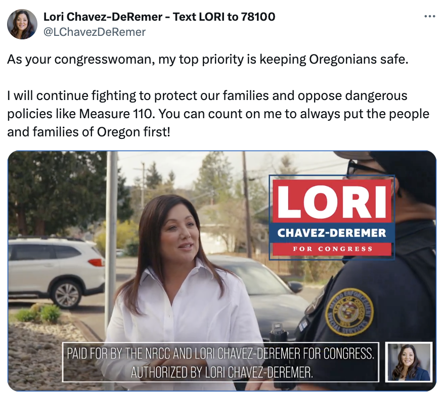 Her campaign launched a new ad featuring local law enforcement officials who praise her work to overturn it and make Oregon communities safer.