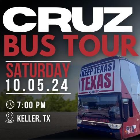 Senator Ted Cruz is excited to announce his 2024 bus tour. The Cruz Bus Tour will be stopping in Keller this Saturday. RSVP reserve your free ticket today. Space is limited!