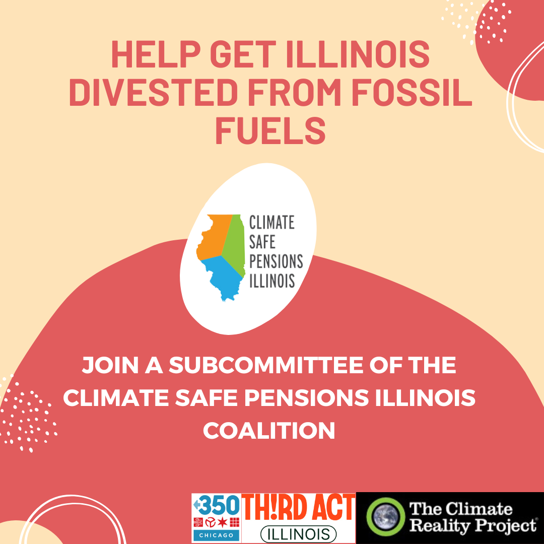 350 Chicago has joined the Climate Safe Pensions Illinois (CSPI) coalition! Formed to advocate for divesting Illinois' state pension funds from fossil fuels, we need volunteers to help with certain tasks to accomplish our goal.
